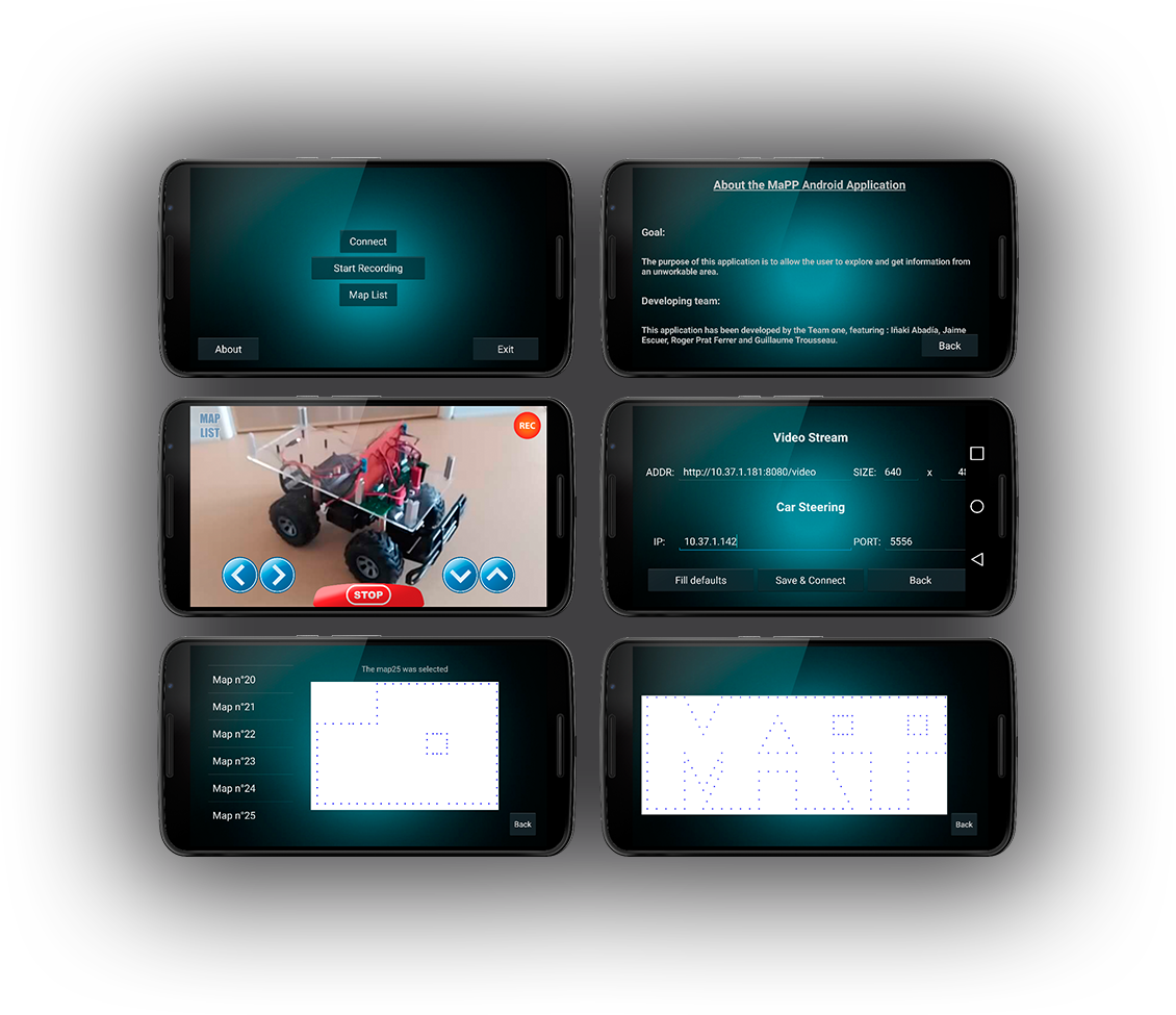 We've built a android-controlled car that's capable of plotting an approximation of the surrounding area. Using 4 ultrasonic sensors we measure the distance from the car to its opposing wall, this sensors are attached to a servo that spinns them to cover all 360º.