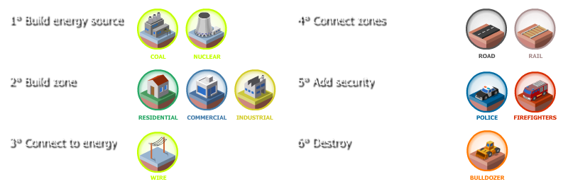 - micropolisJS open-source city simulation engine (itself descended from the original SimCity source). The simulation runs in a dedicated Web Worker so the 3D rendering stays smooth.