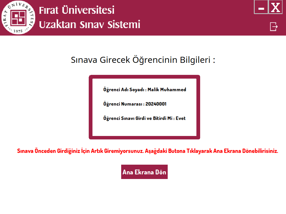• Exam Taking: Guides users through the exam process, preventing retakes for completed exams.