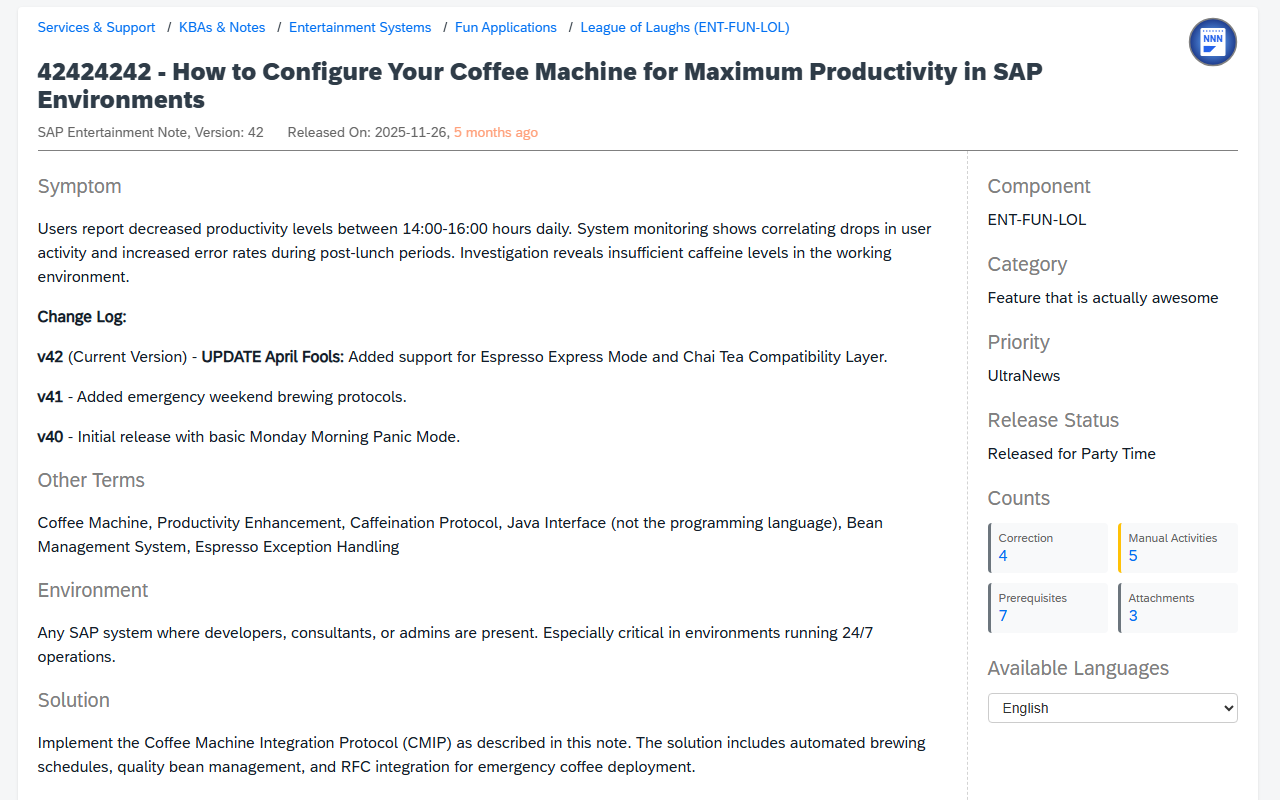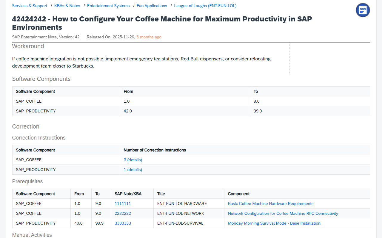 The fastest way to browse SAP Notes and Knowledge Base Articles.
