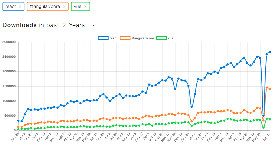 http://www.npmtrends.com/react-vs-@angular/core-vs-vue
