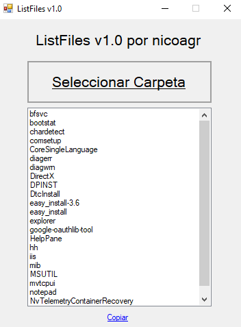 Windows 7, 10 y 11: https://github.com/nicoagr/ListFiles/releases/latest/download/ListFiles.zip
