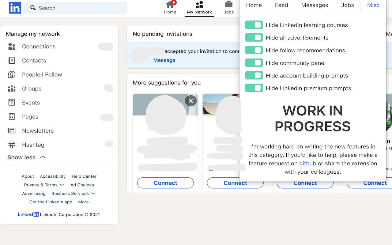 LinkOff cleans and customizes LinkedIn. It filters out the junk, leaving behind the posts and page elements that you want to see.