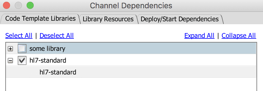 If you set the code template options to auto-set the channel dependencies you can skip this step, but you can always check the channel dependencies to ensure the library is accessible by your channel. Channel dependencies can be found under the Summary tab of your Mirth channel.