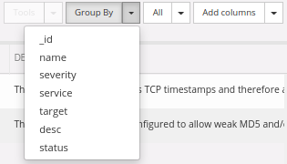 To group vulnerabilities by field you can use the Group By button. After the vulns are grouped you can select them for easy batch editing.