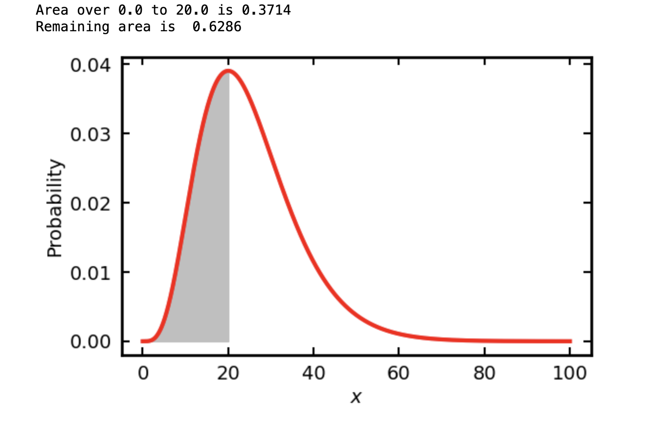 Will plot and integrate a function over the desired range, in addition to giving the point estimates and credible intervals