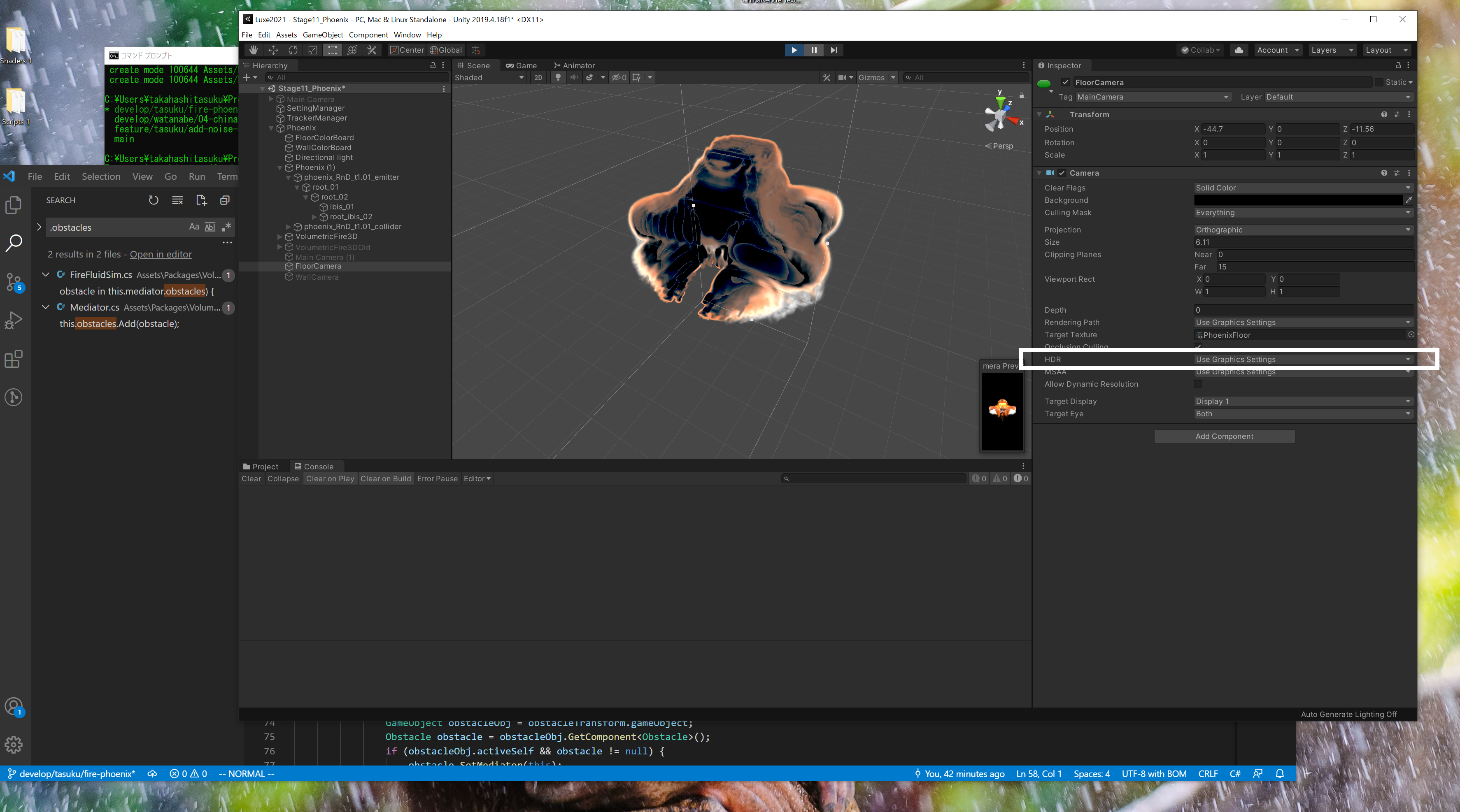 ここのカメラ設定でOffになってないと、Boundsより外から見たときに、黒くなるので、Offに設定する。