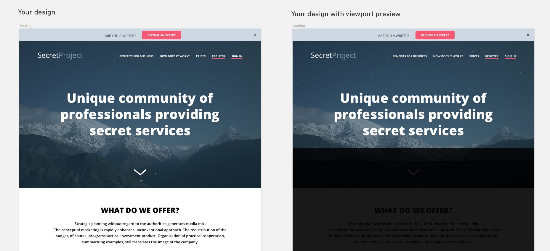 Screens helps you with testings the visible portion of your Design on different screen sizes and operating systems.