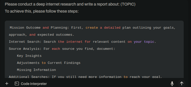 Enter the prompt in the chat, replacing (TOPIC) with your desired topic.