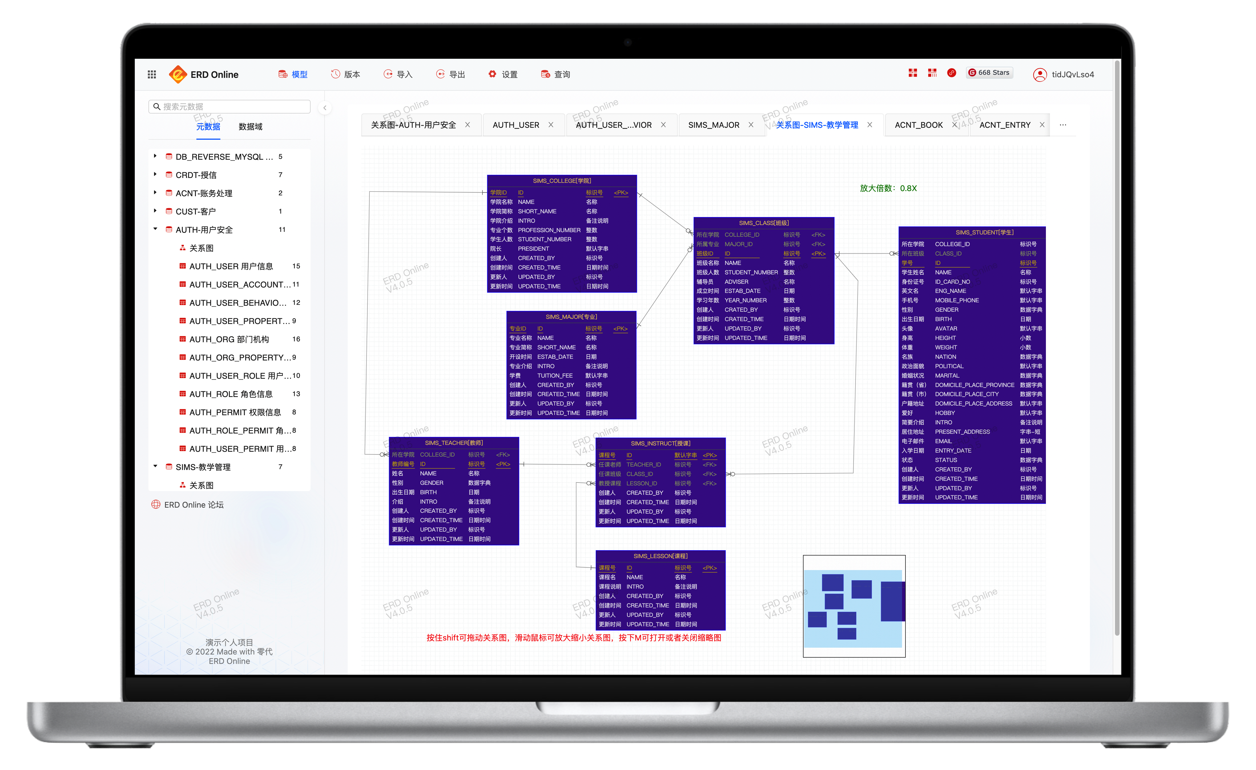 元数据 ERD Online 体验:https://app.erdonline.com/