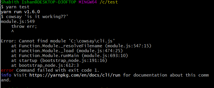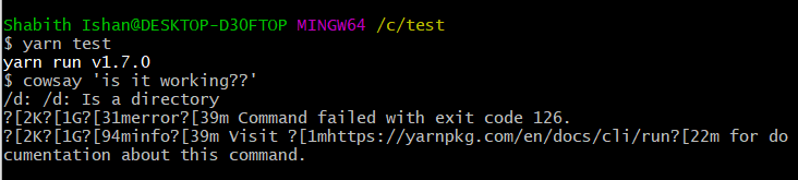 repo to reproduce the error - https://github.com/shabith/yarn-run-bug
