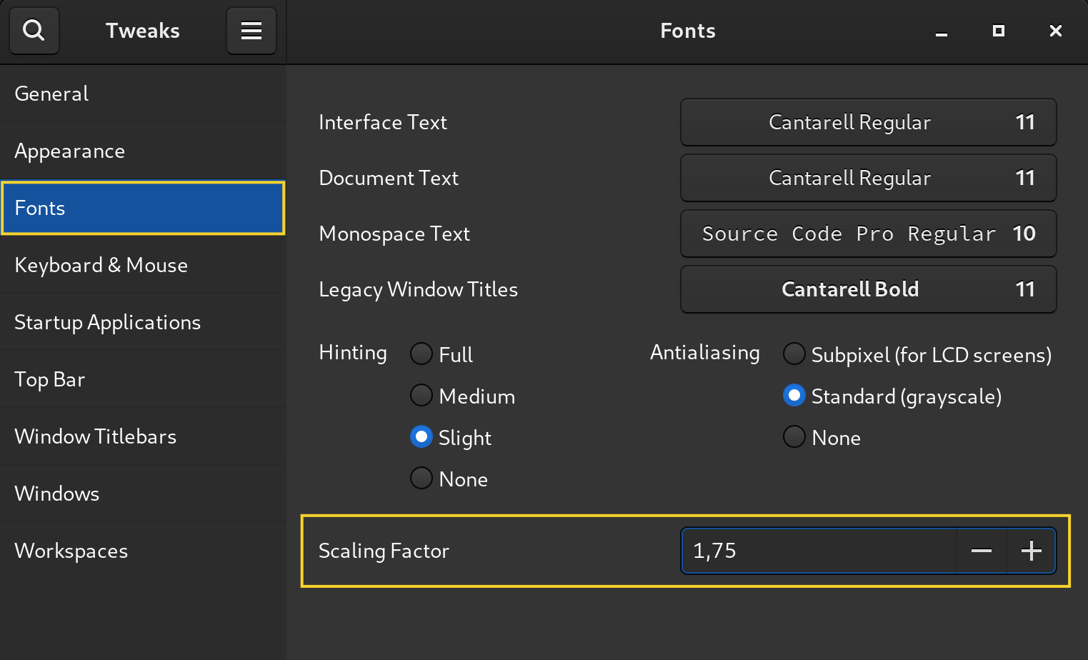 Fonts > Scaling Factor'den ayarları 1.75, 1,80 yapabilirsiniz.